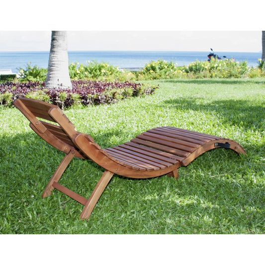 Solid Wooden Indoor and Outdoor Curved Folding Lounger