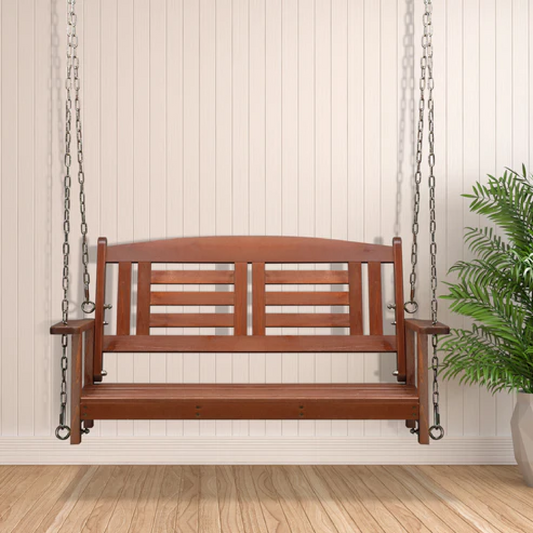 Mahogany Outdoor Hanging Porch Swing Natural Brown